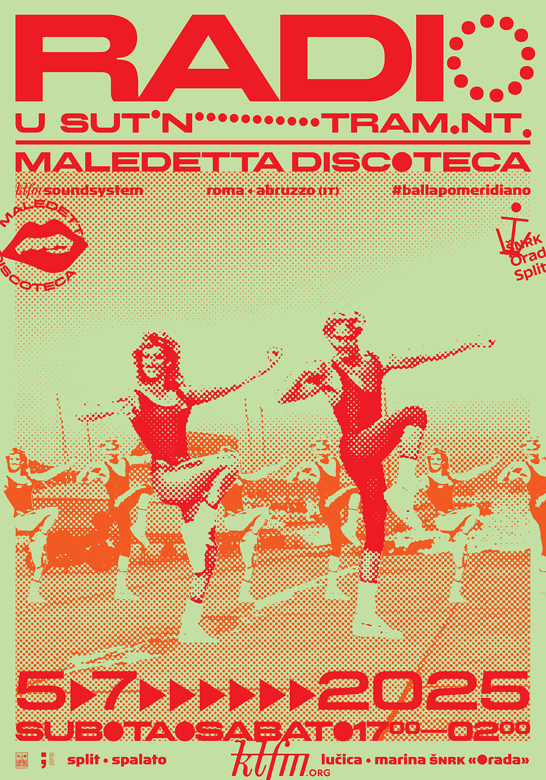 Iz Roma•Abruzzo (it) dolaze puštati mjuzu sa ploča u Split. Pa plakatić. KLFM.